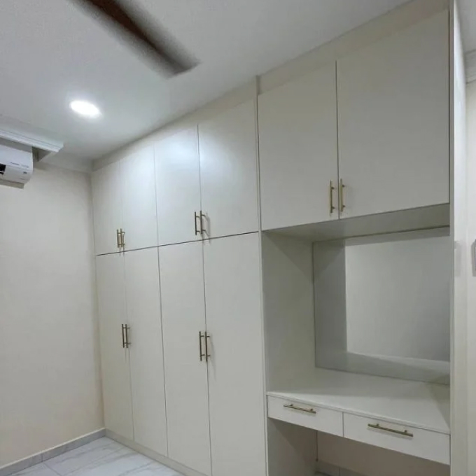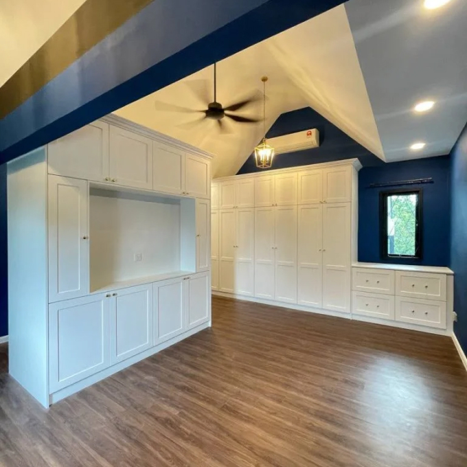 Almari pakaian built-in lebih kemas, menjimatkan ruang, dan boleh disesuaikan mengikut layout bilik tidur moden. Ia juga memberi sentuhan eksklusif berbanding almari ready-made.